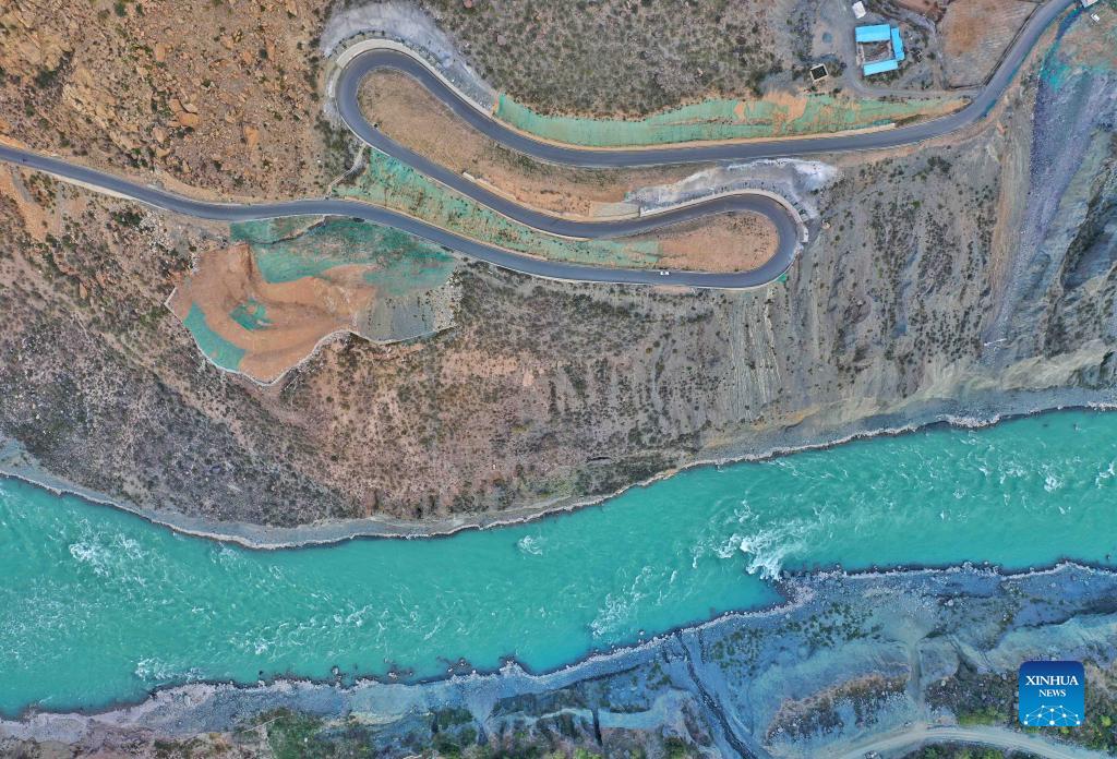 Aerial photo taken on Oct. 22, 2021 shows the winding road in Batang County, Tibetan Autonomous Prefecture of Garze, southwest China's Sichuan Province. (Xinhua/Liu Kun)