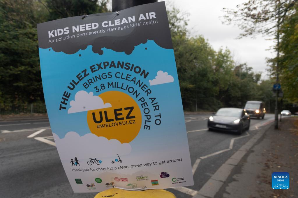 A ULEZ (ultra low emission zone) sign is seen in London, Britain, Oct. 26, 2021. The 26th United Nations Climate Change Conference of the Parties (COP26) will be held from Oct. 31 to Nov. 12 in Glasgow. (Photo by Ray Tang/Xinhua)