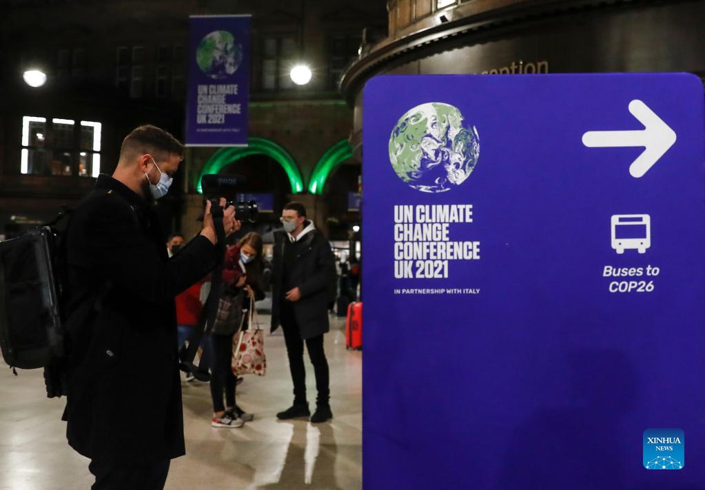 A man films at Glasgow Central train station in Glasgow, Scotland, the United Kingdom on Oct. 30, 2021. The 26th United Nations Climate Change Conference of the Parties (COP26) is scheduled from Oct. 31 to Nov. 12 in Glasgow, Scotland. This is the first of its kind since the Paris Agreement came into force. (Xinhua/Han Yan)