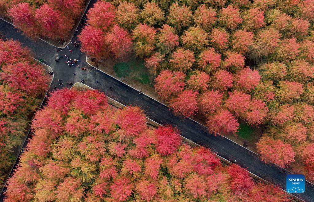 Aerial photo taken on Oct. 31, 2021 shows the autumn scenery in Qingdao, east China's Shandong Province. (Photo by Zhang Jingang/Xinhua)