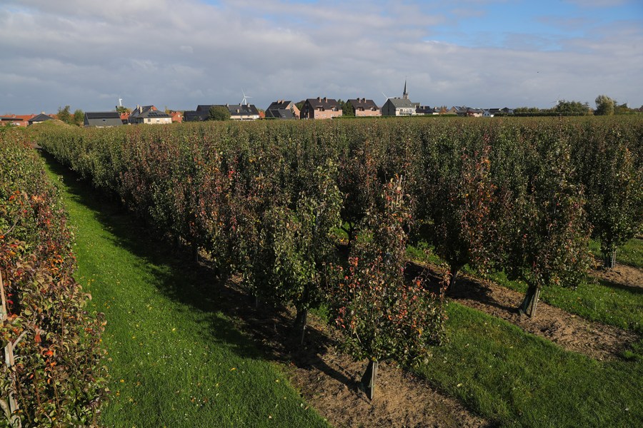 A Belaian conference pear orchard is seen in Sint-Gillis-Waas, Belgium, Oct. 22, 2021. (Xinhua/Zheng Huansong)