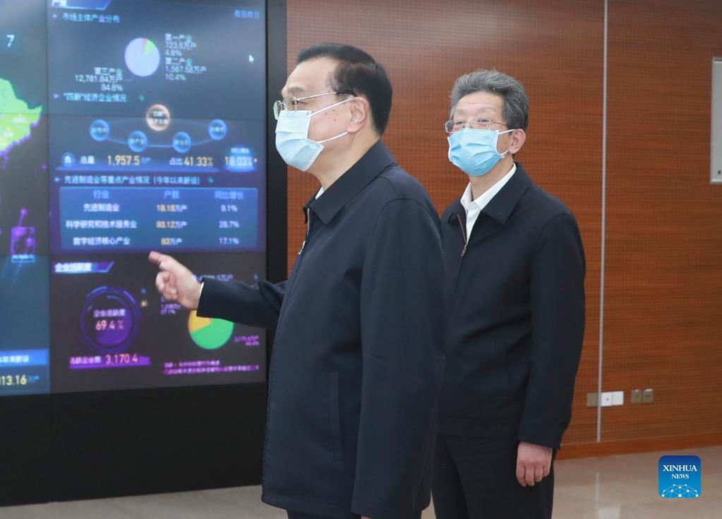 Chinese Premier Li Keqiang, also a member of the Standing Committee of the Political Bureau of the Communist Party of China Central Committee, inspects the State Administration for Market Regulation, Nov. 1, 2021. Li made an inspection trip to the State Administration for Market Regulation and chaired a symposium on Monday. (Xinhua/Ding Lin)