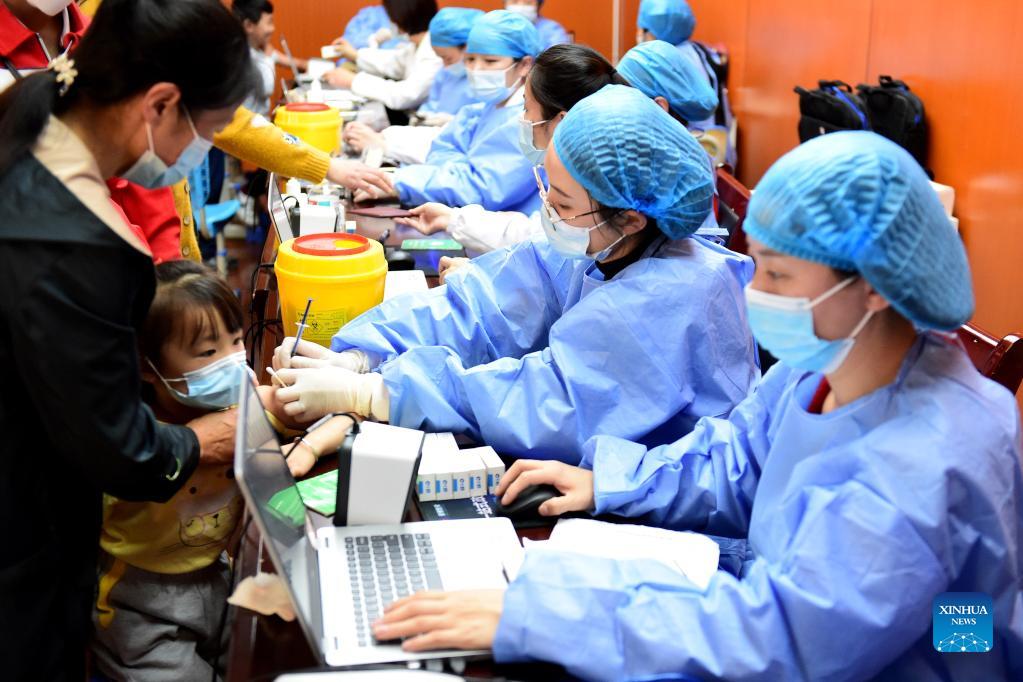 Children aged 3 to 11 receive COVID-19 vaccination in China's Hefei
