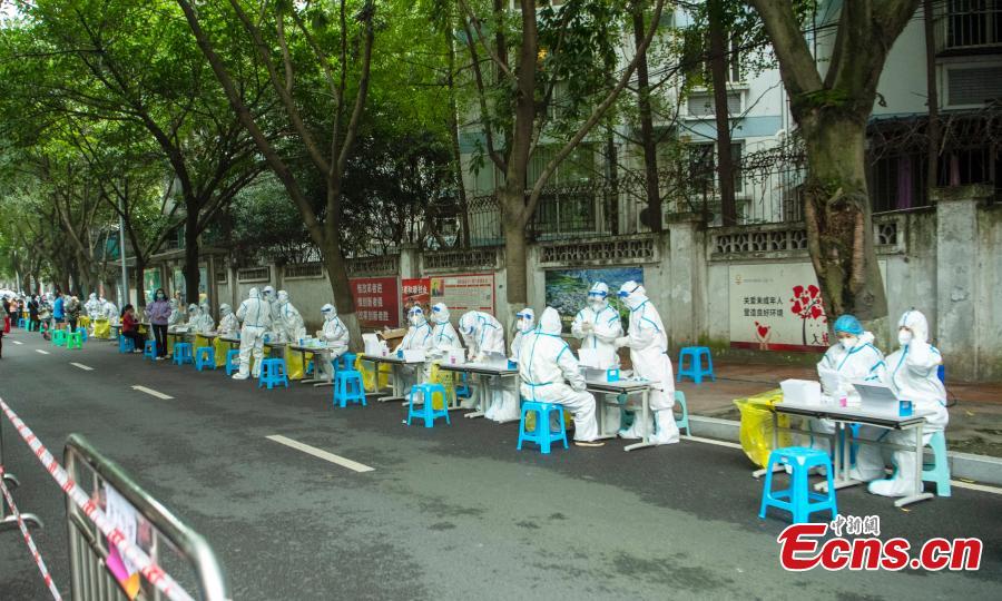 Jinniu District in Chengdu reported 1 confirmed COVID-19 case Tuesday. The residential community lives in and nearby regions have been blocked and residents inside have begun new rounds of nucleic acid tests.