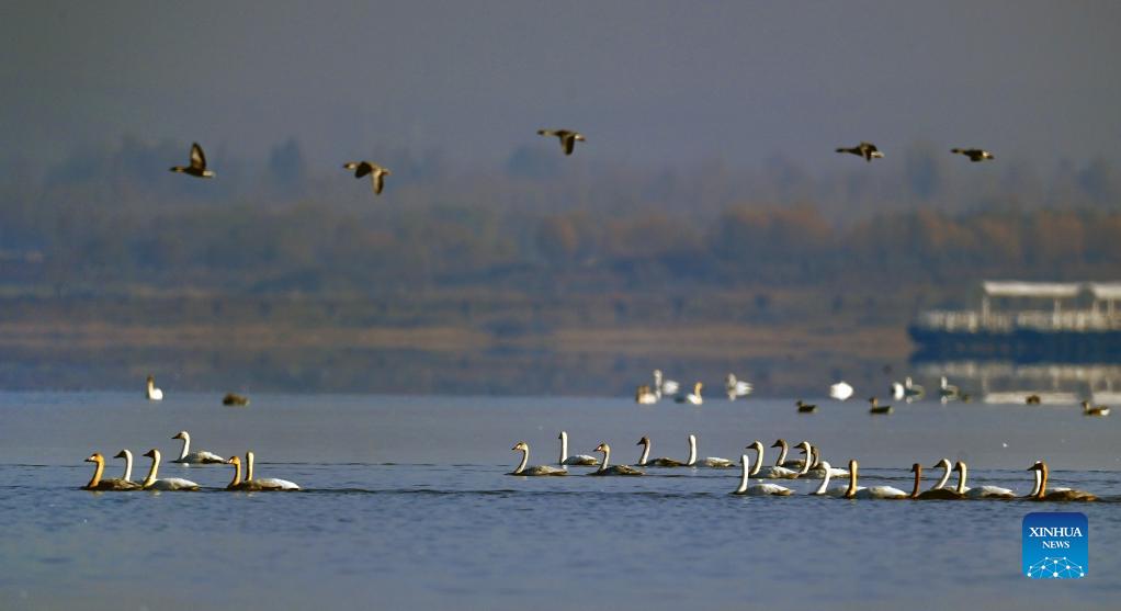 Wild geese, swans arrive at Hongjiannao Wetland Reserve in NW China (8)