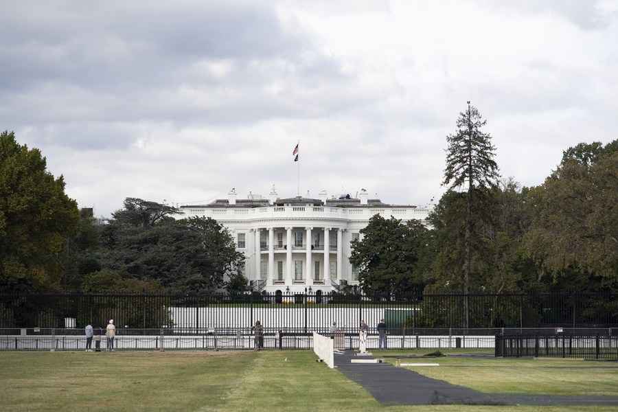 Photo taken on Oct. 28, 2021 shows the White House in Washington, D.C., the United States. (Xinhua/Liu Jie)