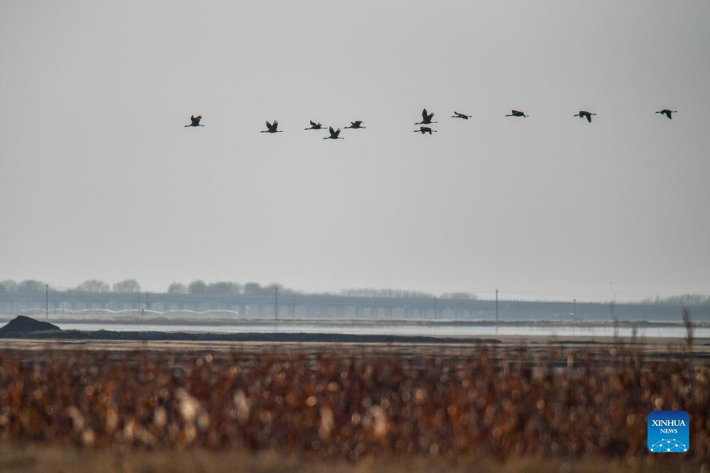 Migrant birds fly over Momoge National Nature Reserve in Jilin (3)