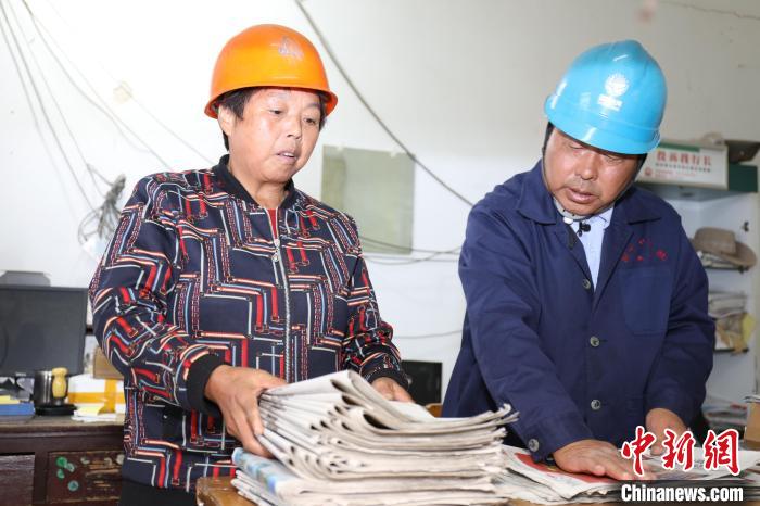 Shi Leyang and his wife Ye Ecai sort through and organize newspapers before delivering them. (Chinanews.com/He Weiwei)