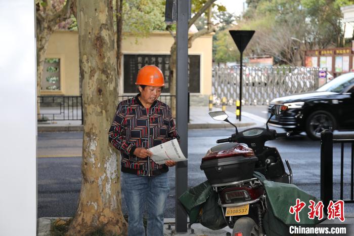 Ye Ecai is on the way to delivering newspapers. (Chinanews.com/He Weiwei)