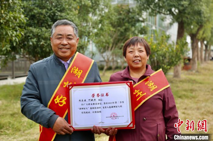 The couple was awarded the title of “people of high integrity in 2021” in Huzhou city because of the high level of dedication, responsibility, trustworthiness and honesty that they demonstrated in their work. (Chinanews.com/Shi Lina)