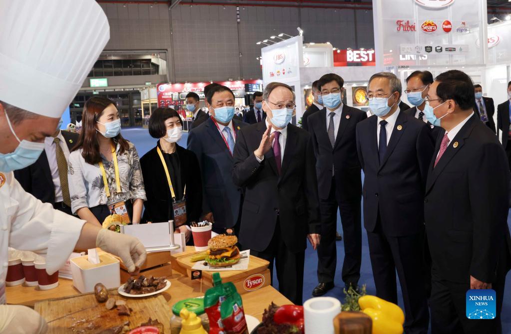 Chinese Vice President Wang Qishan visits exhibitions of the 4th China International Import Expo (CIIE) in east China's Shanghai, Nov. 4, 2021. Wang on Thursday attended the opening ceremony of the 4th CIIE and visited exhibitions. (Xinhua/Liu Weibing)