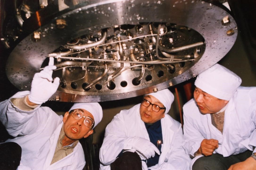 Wang Dazhong (first from left), a renowned Chinese nuclear energy expert, conducts research with his colleagues. (File photo)
