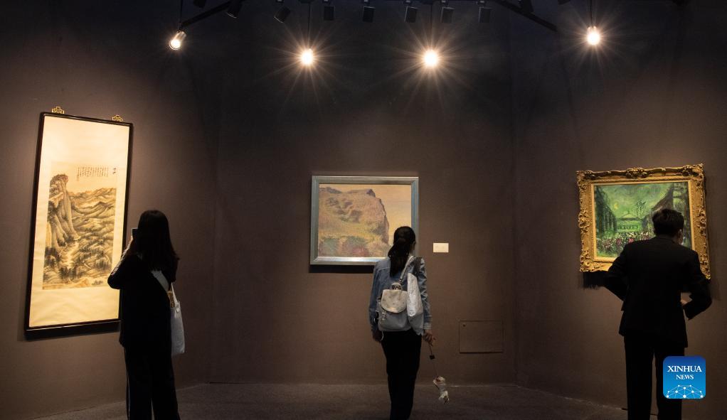 People visit the booth of Sotheby's during the 4th China International Import Expo (CIIE) in east China's Shanghai, Nov. 7, 2021. The China International Import Expo (CIIE) has for the first time established a cultural relics and art section. Major auction houses made their debuts at the fourth iteration of the expo in the hope of attracting Chinese collectors. The special section has an exhibition area of more than 1,200 square meters and hosts 178 exhibits with a total estimated value of 2.35 billion yuan (about 367 million U.S. dollars). (Xinhua/Wu Huiwo)