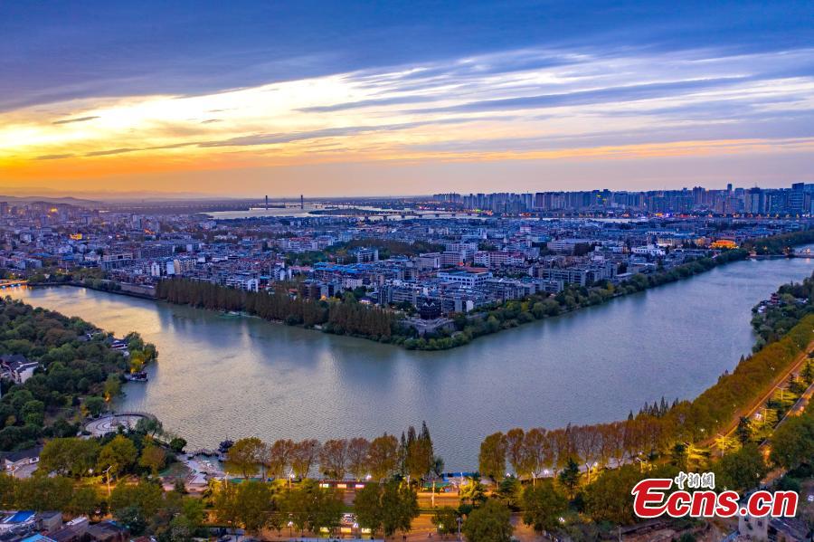 Photo shows the mysterious sunset scenery at the ancient city of Xiangyang, Hubei Province, Nov. 7, 2021. (Photo/Yang Dong)