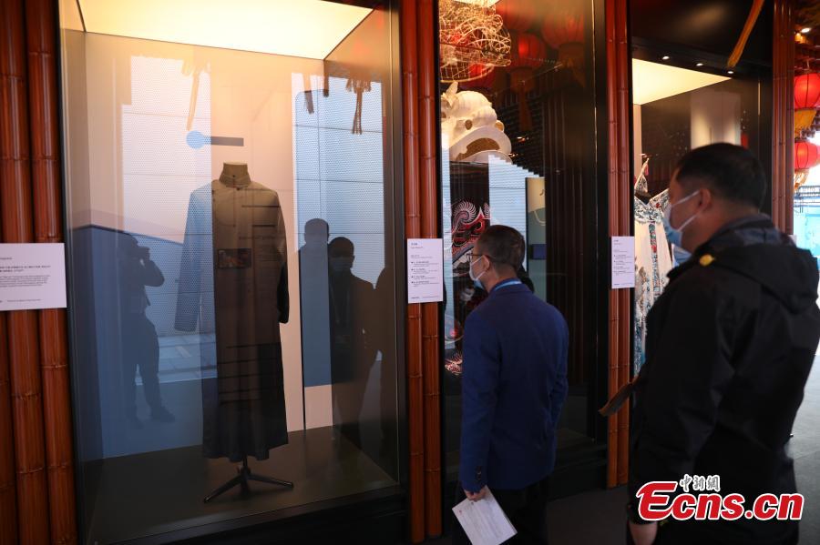 A Chinese-style gown attracts visitors at the 4th CIIE, National Exhibition and Convention Center (Shanghai), Nov. 9, 2021. (Photo: China News Service/Zhang Hengwei)