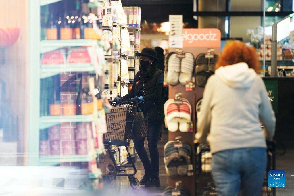 People shop in a grocery store in Washington, D.C., the United States, on Nov. 10, 2021. U.S. inflation remained elevated in October as supply chain disruptions have persisted for months, surging to the highest level in three decades, the Labor Department reported on Wednesday. The consumer price index (CPI) soared 0.9 percent in October after rising 0.4 percent in September, according to the latest report released by the department's Bureau of Labor Statistics. (Photo by Ting Shen/Xinhua)