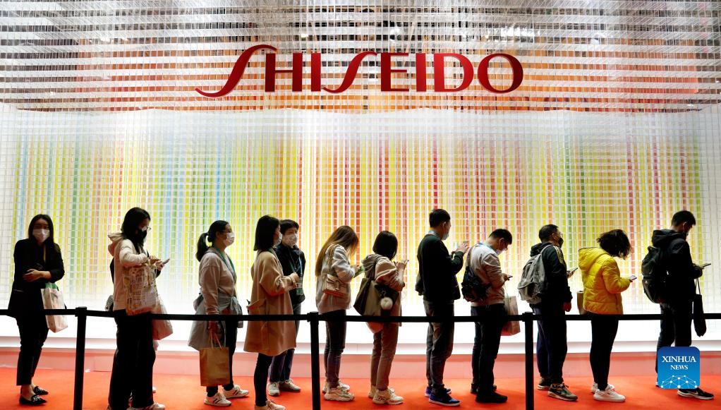 Visitors queue up at the Consumer Goods Exhibition Area of the 4th China International Import Expo (CIIE) in east China's Shanghai, Nov. 8, 2021. The 4th CIIE concluded here on Wednesday. (Xinhua/Liu Ying)