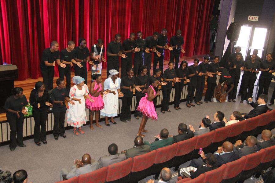 This file photo shows a choir from University of Namibia performs at the official launch ceremony of Confucius Institute at the University of Namibia in Windhoek, capital of Namibia, on Aug. 23, 2013. (Xinhua/Gao Lei)