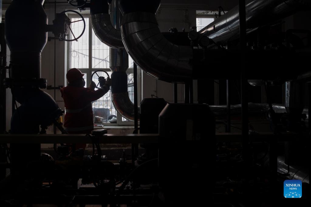 A worker of a thermoelectric company works to make sure the stable operation of local heat supply in Harbin, northeast China's Heilongjiang Province, Nov. 9, 2021. Faced with the recent cold weather and snowstorms, the local authorities have launched an emergency program to ensure local power, gas and heat supply, guaranteeing people's normal life. (Xinhua/Zhang Tao)
