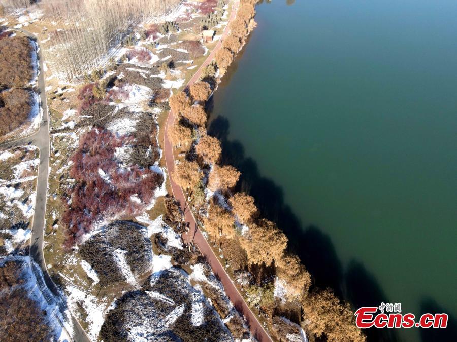 This aerial photo taken on Nov. 11, 2021 shows the picturesque early winter scenery at Lushuiwan scenic area in Zhangye City, northwest China's Gansu Province. (Photo/Cheng Li)