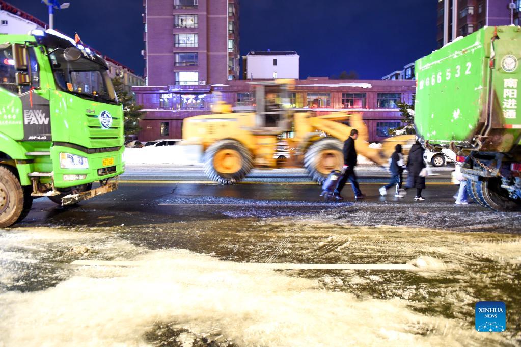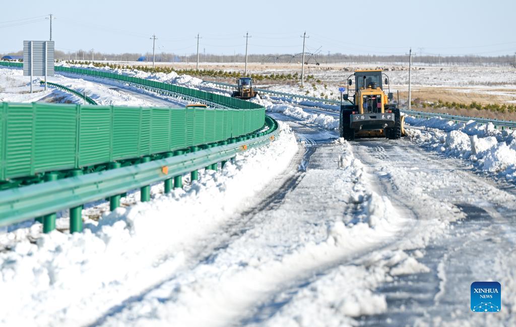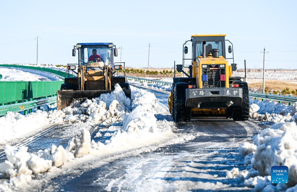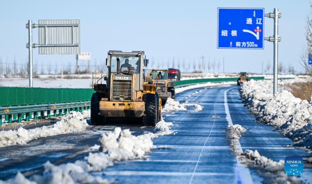 Snow removing operations carried out to resume transportation, production in Inner Mongolia
