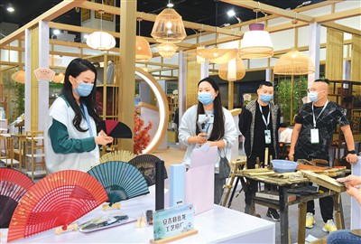 Customers buy bamboo fans at the 14th China Yiwu International Forest Products Fair held at the Yiwu International Expo Center in Yiwu, east China’s Zhejiang province. (Photo/Gong Xianming)