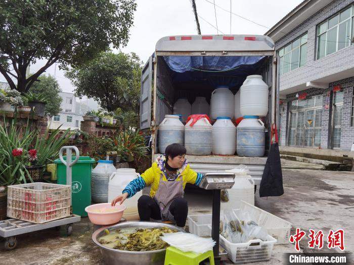A villager packs homemade pickles in Libei village, Guiyang city, capital of southwest China's Guizhou province. (Photo/Zhou Yanling)