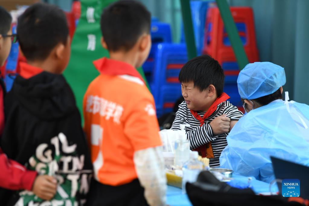 A student receives a dose of COVID-19 vaccine in Hefei, east China's Anhui Province, Nov. 12, 2021. Hefei recently launched a COVID-19 vaccination campaign for children aged three to 11. (Xinhua/Liu Junxi)