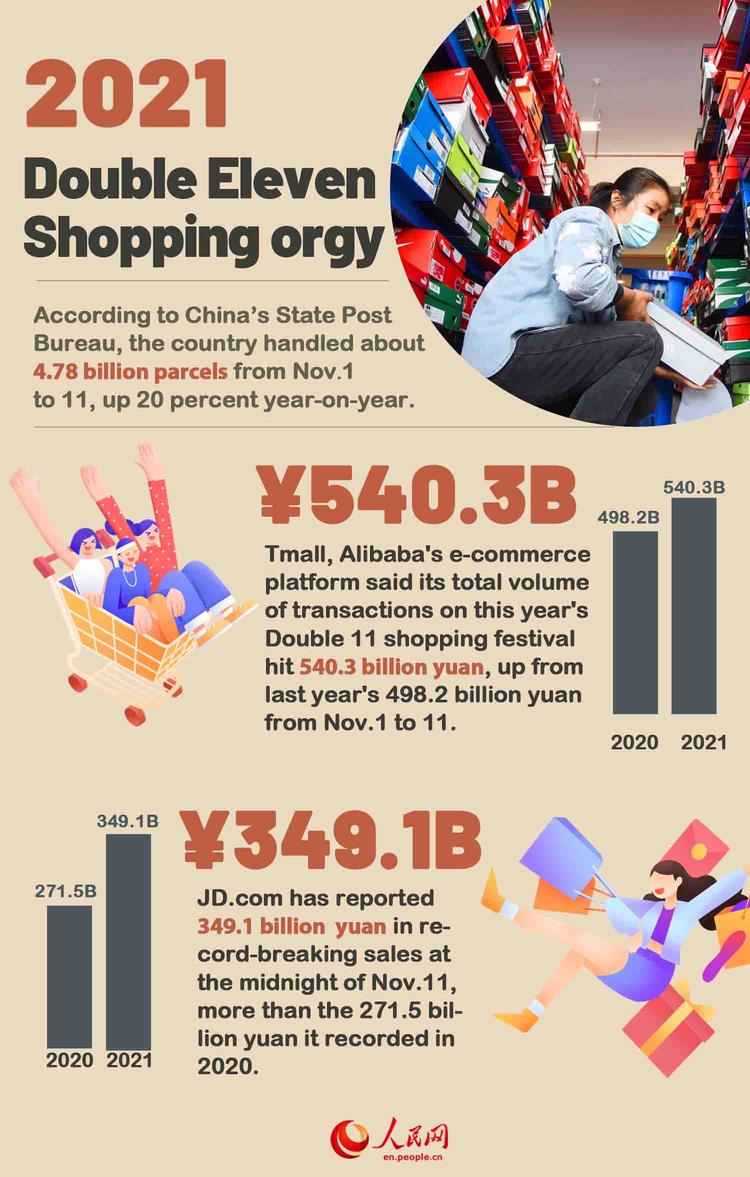 Sales volumes during the Single's Day shopping event are often viewed as a barometer of China's consumption power. This year's event closed on Thursday, and both Alibaba and JD.com, another China's e-commerce giant, set new records, racking up 540.3 billion yuan and 349.1 billion yuan in sales, respectively. The figure shows that the sales volume during Single's Day has maintained momentum. It seems that the COVID-19 pandemic has not derailed the spending plans of the Chinese people. The consumption has been robust, as always and forever.