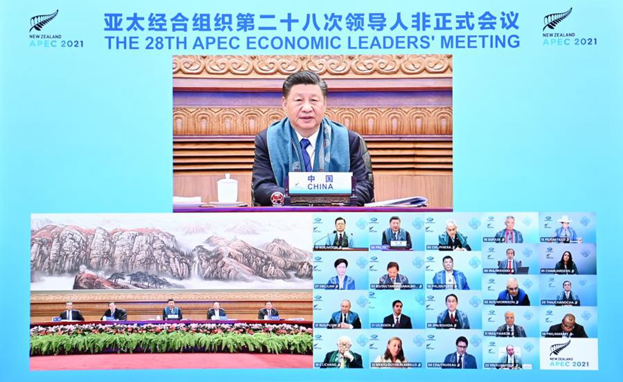"We need to follow a science-based approach in pandemic response and deepen international cooperation," Xi said, pledging that China will continue to provide support to the Sub-Fund for APEC Cooperation on Combating COVID-19 and Economic Recovery.
