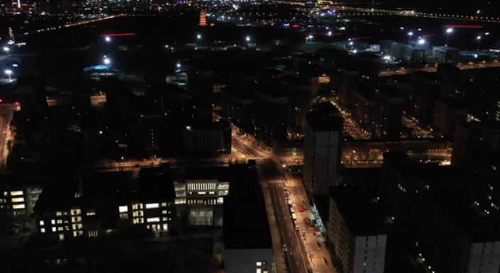 Xiong'an, located about 100 km southwest of Beijing, is a 1,770-sq-km green city area featuring innovative development and a national model of high-quality development. The video shows the scenery lit up at night.