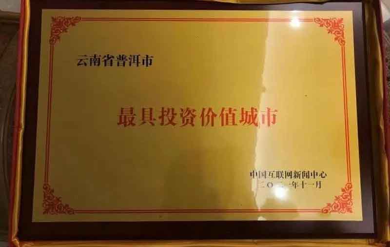 On November 7, the release of “High-quality Development Cases and City Brands of Chinese Cities” sponsored by China Internet News Center was held in Beijing, and Pu’er City won the title of “City with the Most Investment Value”.