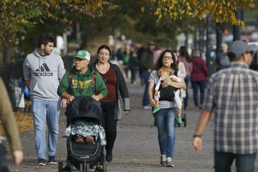 Tourists spend time on the National Mall in Washington D.C., the United States on Oct. 30, 2021. (Xinhua/Ting Shen)