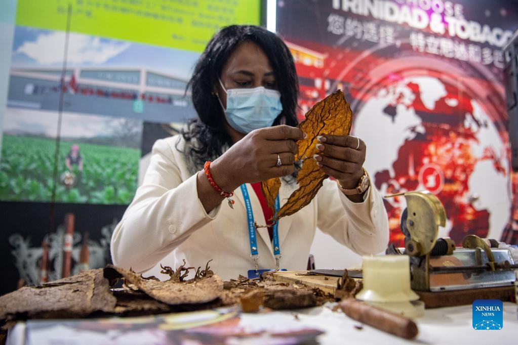 A Cuban cigarette maker rolls cigarettes at an exhibition of the 14th China-LAC Business Summit in southwest China's Chongqing, Nov. 16, 2021. The summit kicked off Tuesday here in Chongqing. (Xinhua/Tang Yi)