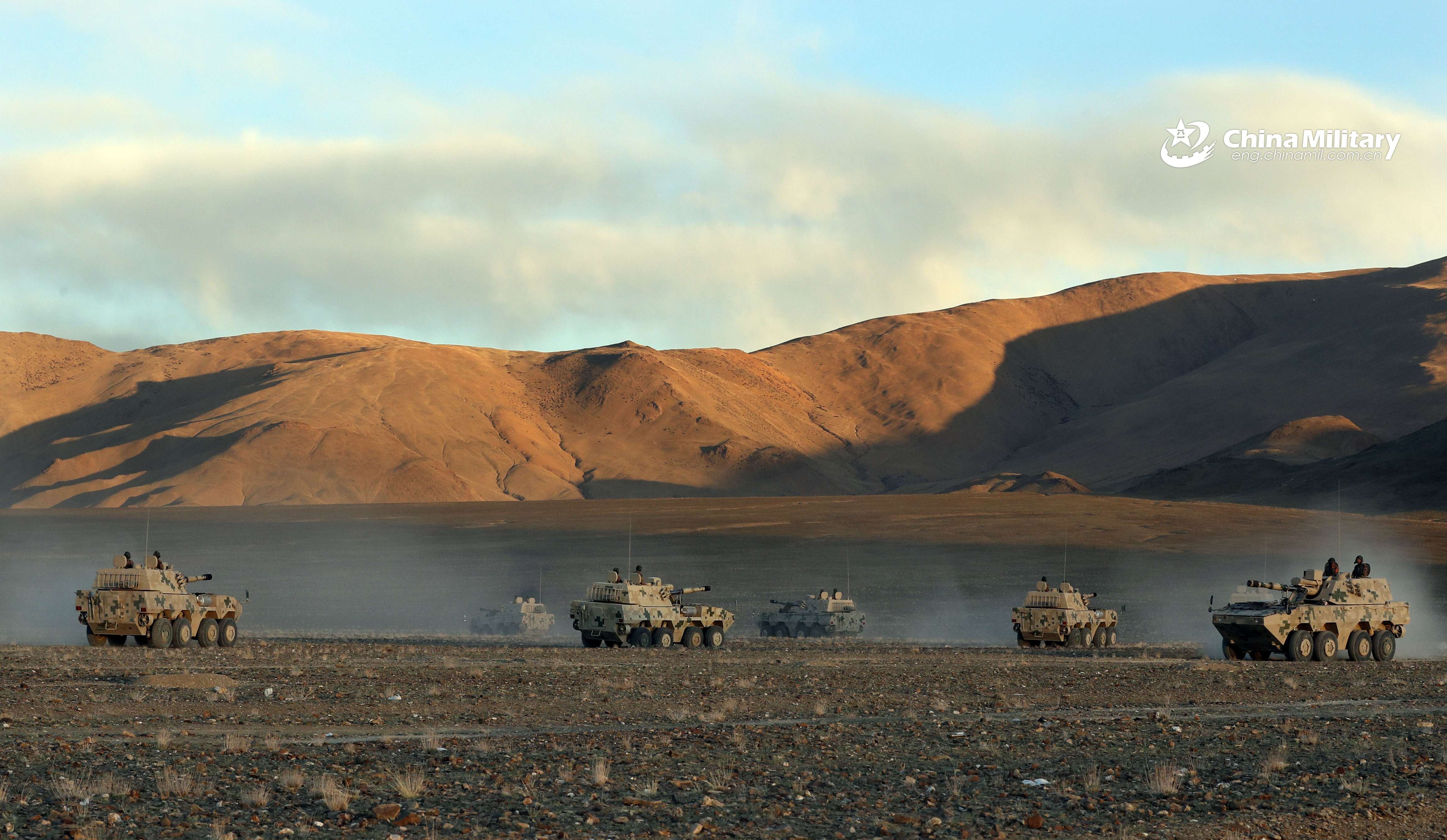 Armored vehicles attached to a division under the PLA Xinjiang Military Command advance to engage mock enemy positions during a live-fire test in late October, 2021. The training exercise was conducted on the Karakoram Plateau at about 4,500 meters above sea level, with an annual average temperature below -10°C. (eng.chinamil.com.cn/Photo by/ Liu Yong, Li Kang, Zhang Li, Shuai Lijian and Yan Shiqiang)