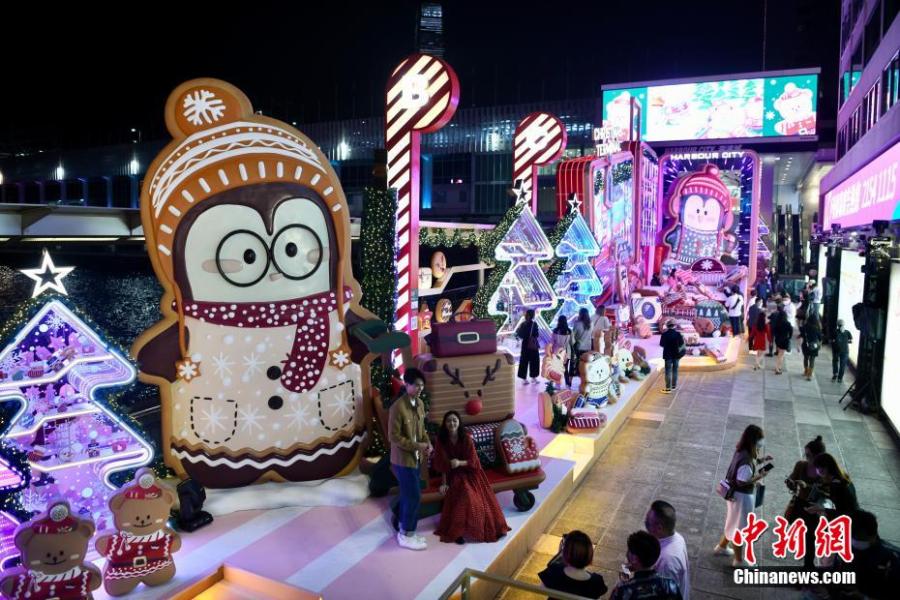 Photo taken on Nov. 17, 2021 shows Christmas decorations at the Ocean Terminal Forecourt, Hong Kong. (Photo: China News Service/Li Zhihua)
