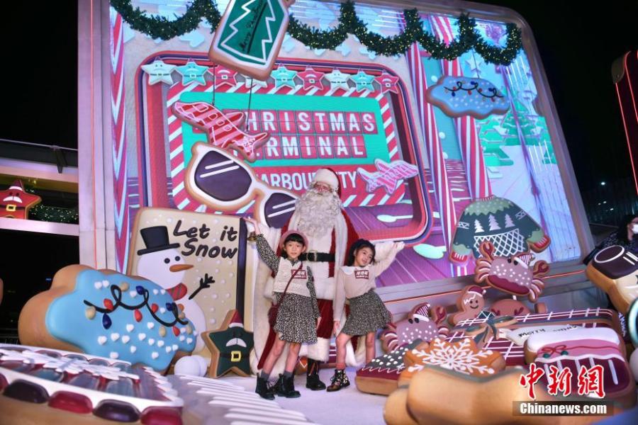 People take photos with Christmas decorations in Hong Kong, Nov. 17, 2021. (Photo: China News Service/Li Zhihua)