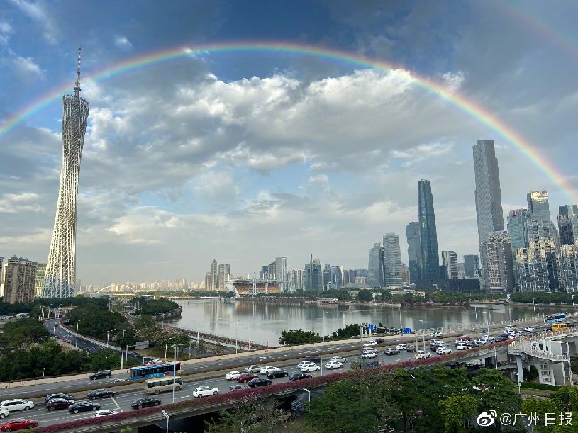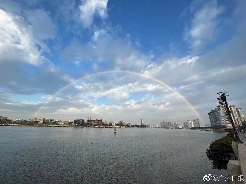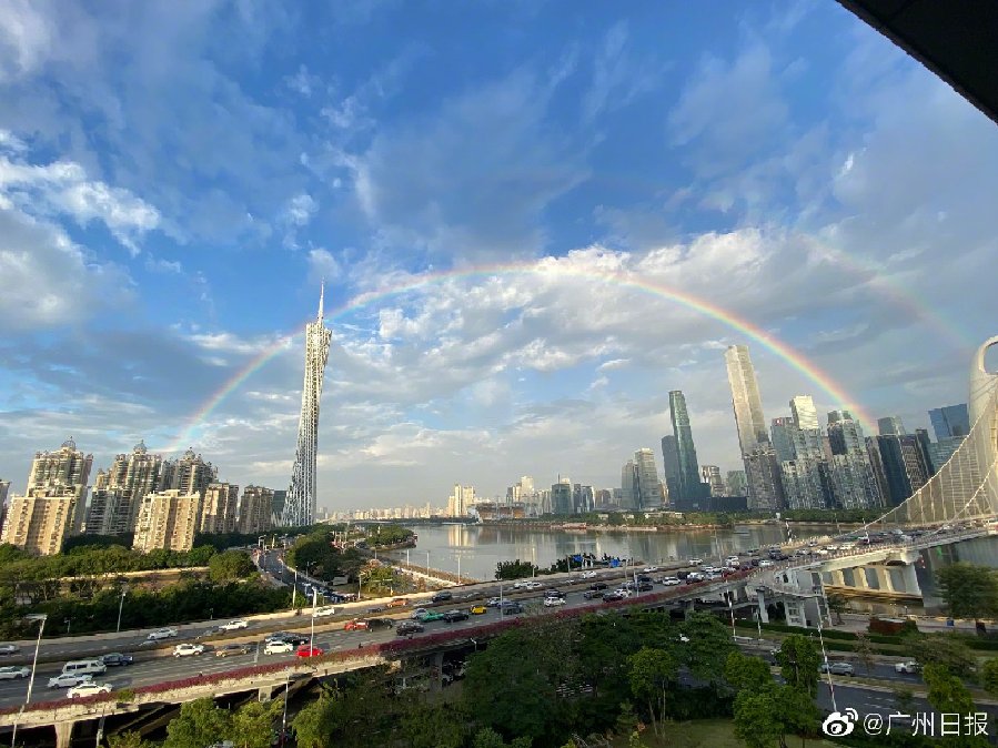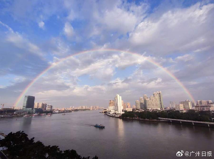 Double rainbow appears over Pearl River in south China's Guangdong Province