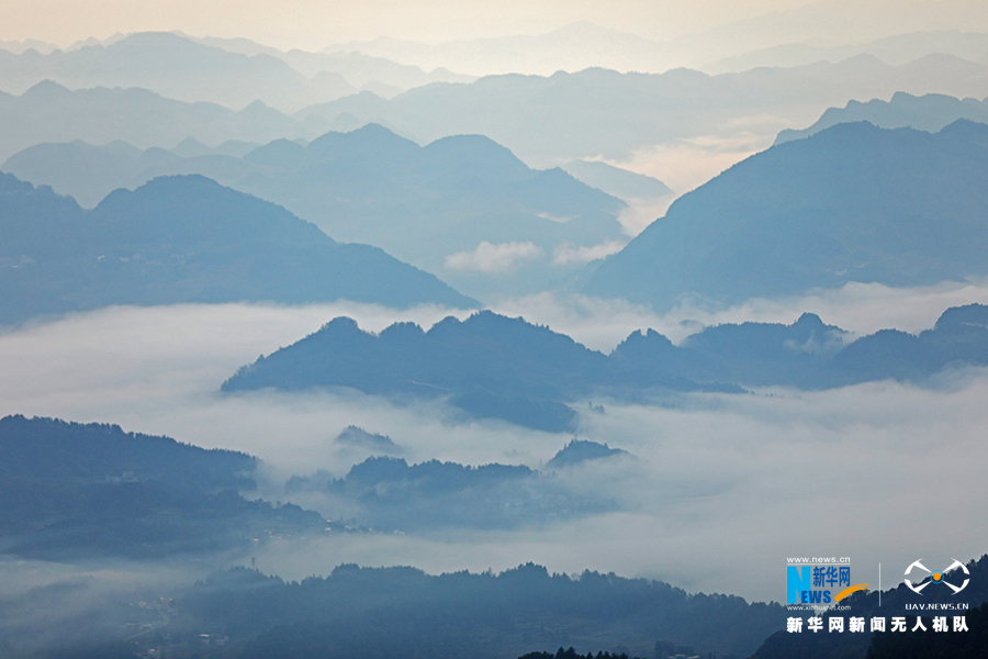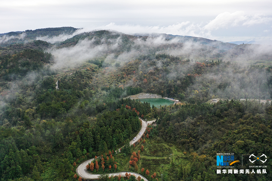 In early winter, the villages of Pengshui Miao-Tujia Autonomous County, southwest China's Chongqing, are shrouded in mist and clouds. Roads, fields, and villages are enveloped in a haze. In recent years, the local authority has vigorously promoted comprehensive improvement of the rural environment and the building of a beautiful countryside. Aerial view of the road next to Yingtao Villag of Runxi Township in the county shows a line of houses facing on to colourful trees on both sides of the road, making a picturesque rural scene. (Xinhuanet/ZhaoYong)