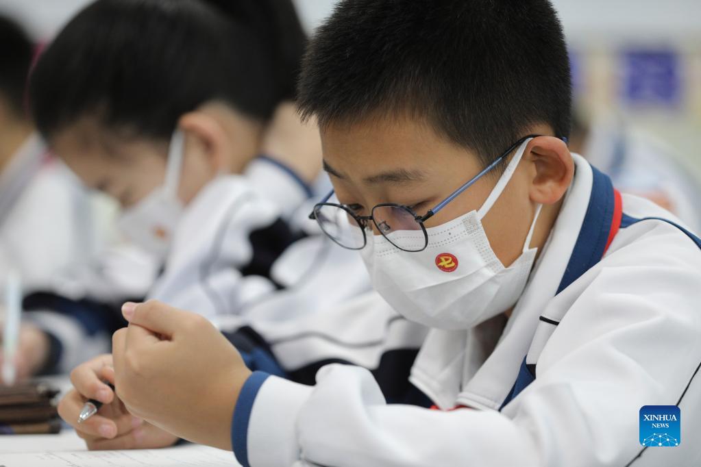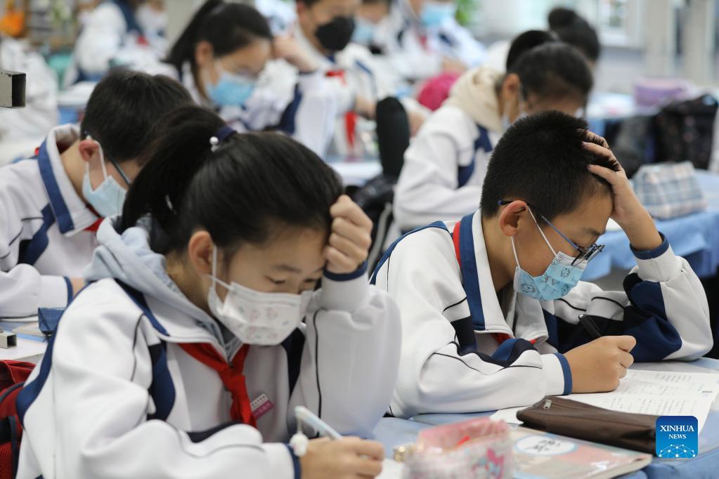 Students study in a classroom at No. 7 Middle School in Harbin, northeast China's Heilongjiang Province, Nov. 18, 2021. Harbin terminated its emergency responses to COVID-19 on Thursday and started advancing the full restoration of the normal economic and social order after the recent resurgence of COVID-19 has been subdued. (Xinhua/Zhang Tao)