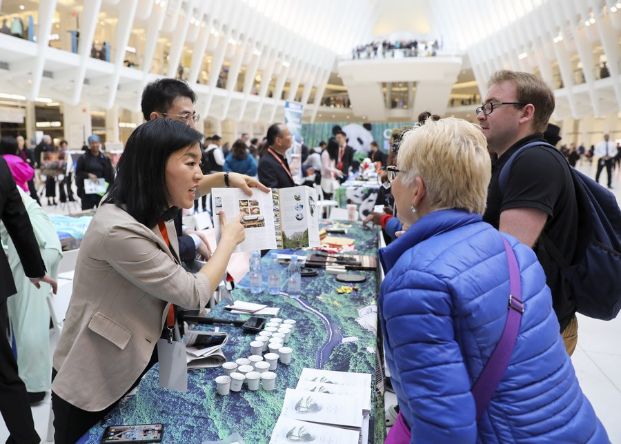 File photo shows visitors attending a Huangshan tourism promotion event at World Trade Center in New York, the United States, on May 3, 2019. (Xinhua/Wang Ying)