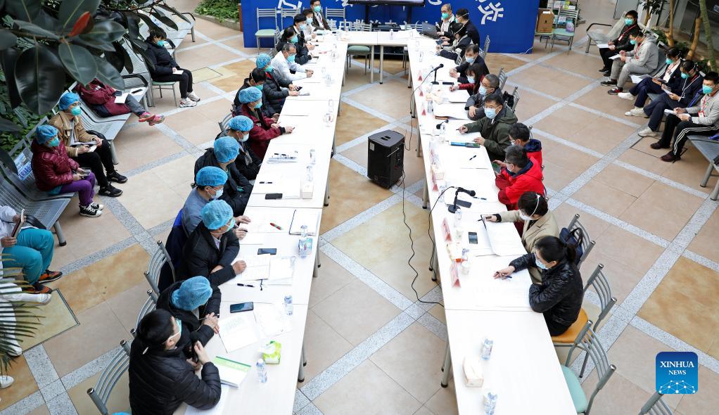 Members of the joint expert group conduct medical consultation in Dalian, northeast China's Liaoning Province, Nov. 19, 2021. The first batch of three patients and one asymptomatic person in the latest COVID-19 epidemic were discharged from hospital on Friday in Dalian. They will continue a 14-day isolated medical observation in designated hospitals. (Xinhua/Yao Jianfeng)