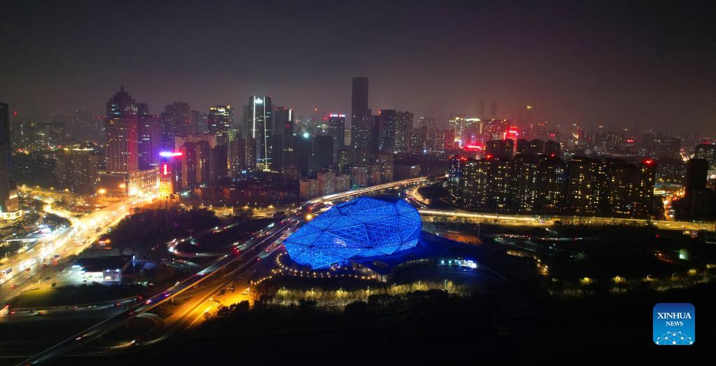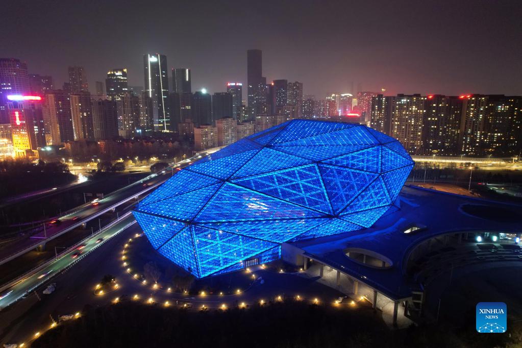 Aerial photo shows the Shengjing Grand Theater lit up blue to celebrate World Children's Day in Shenyang, northeast China's Liaoning Province, Nov. 20, 2021. A total of 23 Chinese cities on Saturday lit iconic buildings and monuments blue, including a section of the Great Wall of China, to mark World Children's Day. The celebration, hosted by UNICEF, was livestreamed due to COVID-19 and called on society as a whole to unite for girls' and boys' rights to health, education, protection and participation. World Children's Day commemorates the adoption of the Convention on the Rights of the Child on Nov. 20, 1989. China ratified the convention in 1992. (Xinhua)