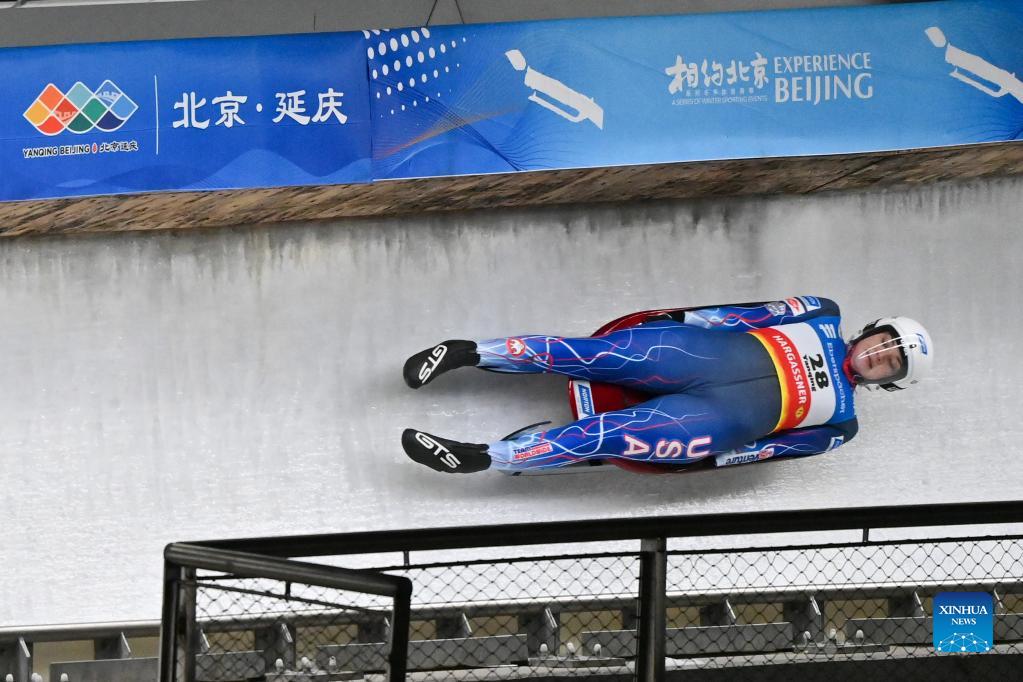 Summer Britcher of the United States competes during Women's Singles at the Experience Beijing FIL Luge World Cup in Yanqing, Beijing on Nov. 21, 2021. (Xinhua/Chen Yichen)