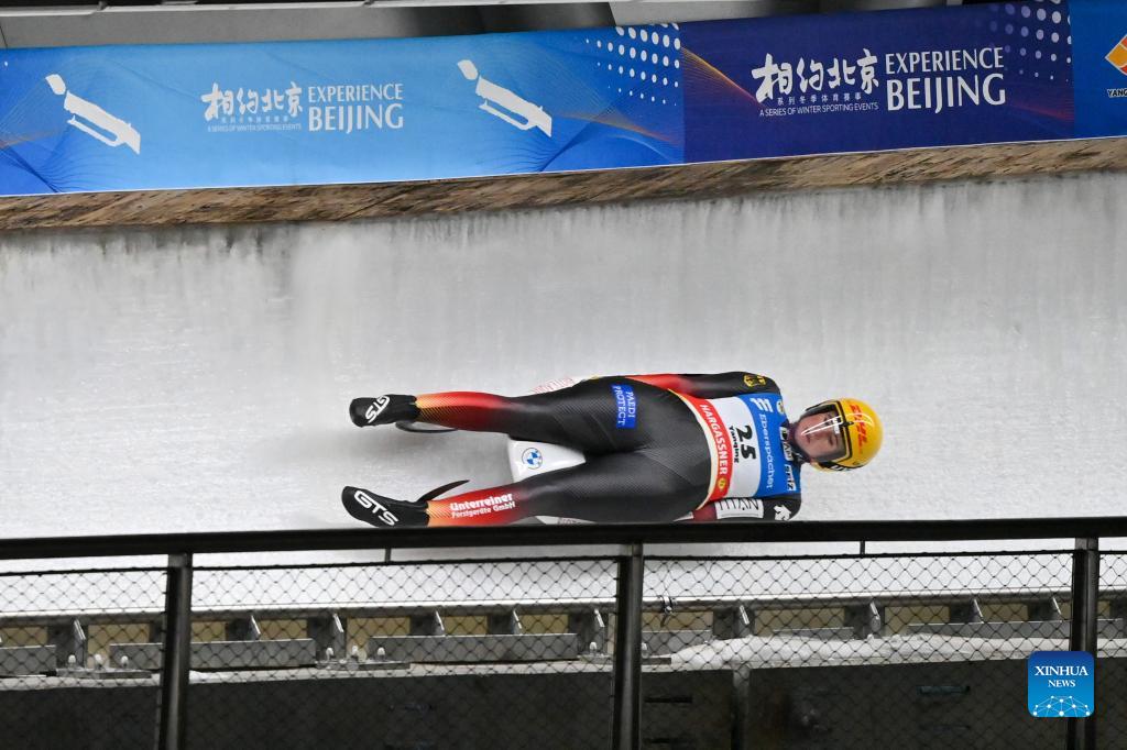 Natalie Geisenberger of Germany competes during Women's Singles at the Experience Beijing FIL Luge World Cup in Yanqing, Beijing on Nov. 21, 2021. (Xinhua/Chen Yichen)