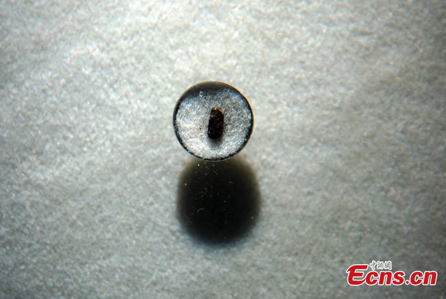 Carbonized rice is on display at an exhibition themed on Shangshan Culture (around 11,000-8,500 years ago) at the National Museum of China in Beijing, Nov. 21, 2021. (Photo: China News Service/Sun Zifa)