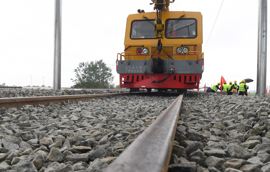 Photo taken on May 30, 2020 shows the construction site of the Belgrade-Budapest railway in Stara Pazova, Serbia. (Dimitrije Goll/Serbian President's Office/Handout via Xinhua)