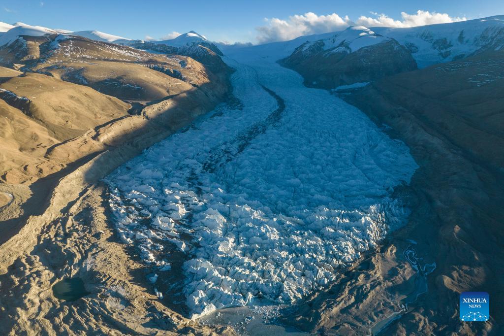 Aerial photo taken on Nov. 20, 2021 shows the Gangbug Glacier in the border area between Nagarze and Kangmar counties, southwest China's Tibet Autonomous Region. (Xinhua/Sun Ruibo)
