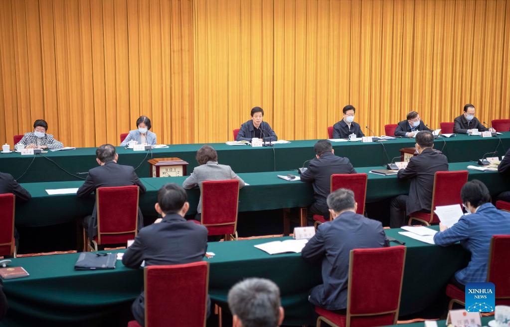Li Zhanshu, chairman of the National People's Congress Standing Committee, also a member of the Standing Committee of the Political Bureau of the Communist Party of China Central Committee, speaks at a symposium on Law on Family Education Promotion in Beijing, capital of China, Nov. 22, 2021. (Xinhua/Li Tao)