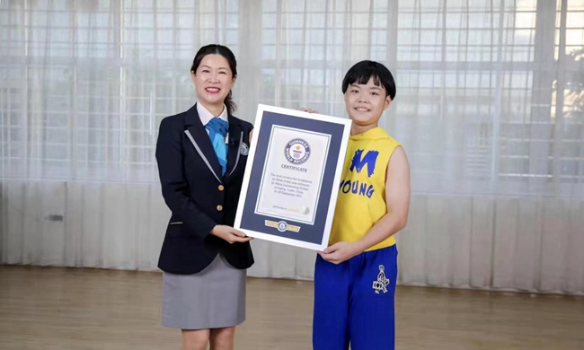 Wangguan Wutong receives a Guinness World Records certificate. (Photo courtesy of the interviewee)